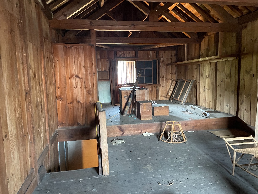 蔵の1階部分は、木材の天井と床で落ち着きのある内装にまとめました。