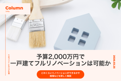 延床面積が大きい戸建て住宅の場合、予算2,000万円ではフルリノベーションが難しくなるケースがあります。