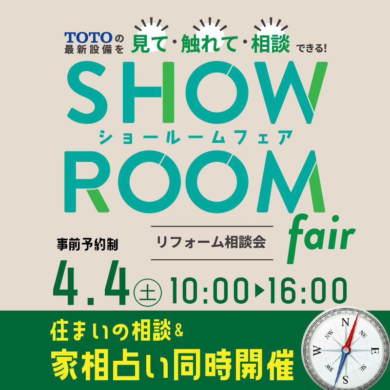 【4/4(土)】リフォーム相談会フェア in TOTO小山ショールーム 住まいの相談 × 家相占い 同時開催