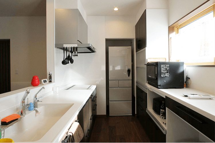 全体が見渡せるようにLDKをつなげるとともに、心がけた使いやすい動線。